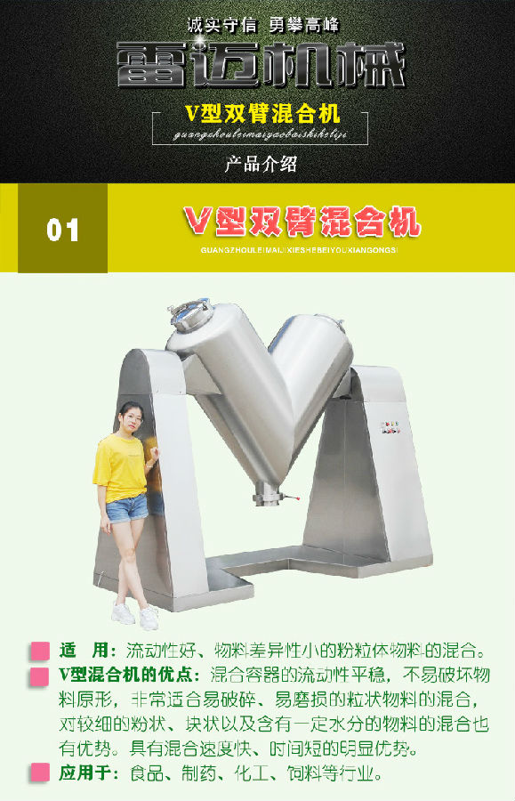用于制药、化工、电子、食品、饲料等行业对粉状、颗粒状等物料的均匀混合。